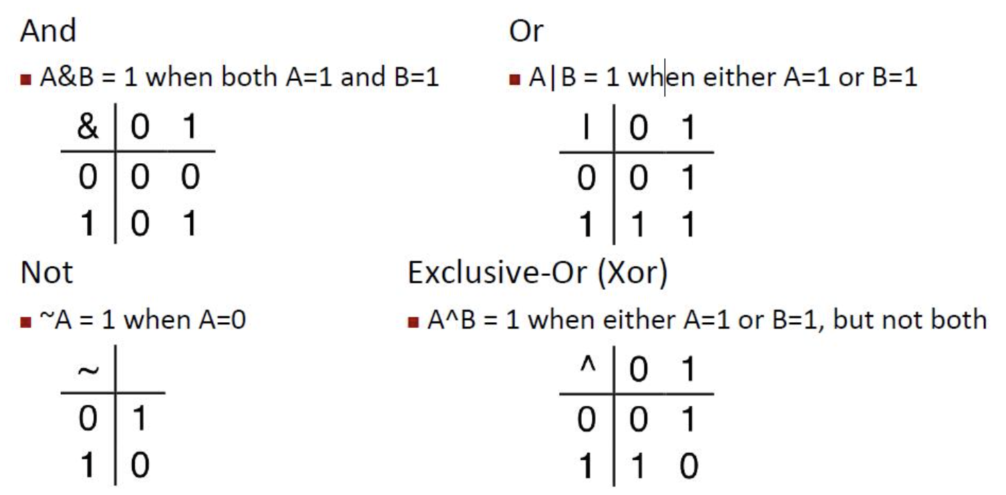 - 一个长度为 $w $的位向量表示集合 ${0, 1, …, w-1}$ 的子集